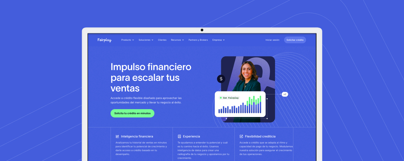 El primer paso fue reorganizar la propuesta de valor. Los servicios principales de Fairplay se estructuraron en productos claramente identificables —Crece, Proyecta, Cobra y Paga—.En paralelo, se trabajó el claim de marca y el posicionamiento, construyendo “Fairplay, patrocinador de negocios exitosos”. Esta decisión permitió reforzar la conexión entre el nombre de la compañía y el éxito financiero de sus clientes, alejándonos del concepto deportivo.Además, se ajustaron los mensajes clave para conectar mejor con las expectativas del cliente y se rediseñó la web con el objetivo explícito de mejorar la conversión y reflejar con mayor claridad la esencia de Fairplay.Dentro del roadmap también se incluyó la mejora de la usabilidad y el CRO, reforzando su papel como herramienta estratégica de captación.El resultado fue una web coherente con su posicionamiento, más clara en su propuesta y preparada para actuar como plataforma real de conversión y reconocimiento en la industria.